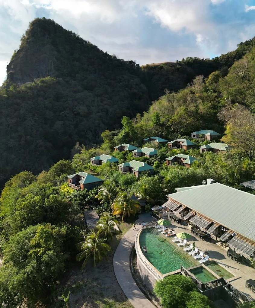 Gently tucked in the hills of Morne Acouma Soufrière in the south, the new Jungle Bay Eco Villas offer a bird’s eye view of one of the most scenic parts of The Nature Island. The Scotts Head Marine Sanctuary, renowned for award-winning diving and snorkeling, is just a few minutes away. This luxury eco property was built with sustainability and preservation of the natural environment in mind and offers holistic activities for wellness and relaxation.